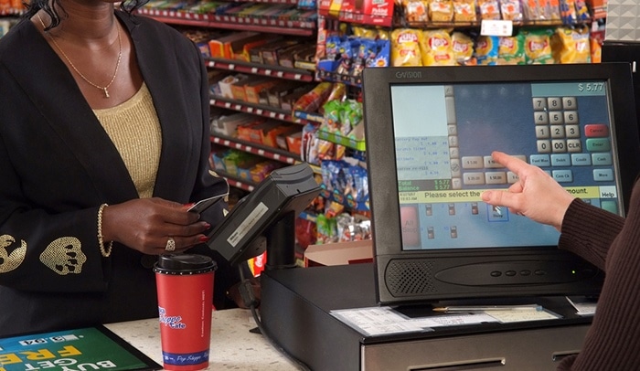 El encargado de manipular los puntos de venta primero comprueba los datos del producto que se va a comprar con el lector de códigos de barra, introduce la tarjeta en el punto de venta para que este pueda descodificar los datos, la computadora envía esos datos recabados a los sistemas receptores, ya sean del banco, empresa de tarjeta de crédito o cooperativa de crédito y esta da el visto bueno al asegurarse que el cliente posee la cantidad suficiente de dinero.